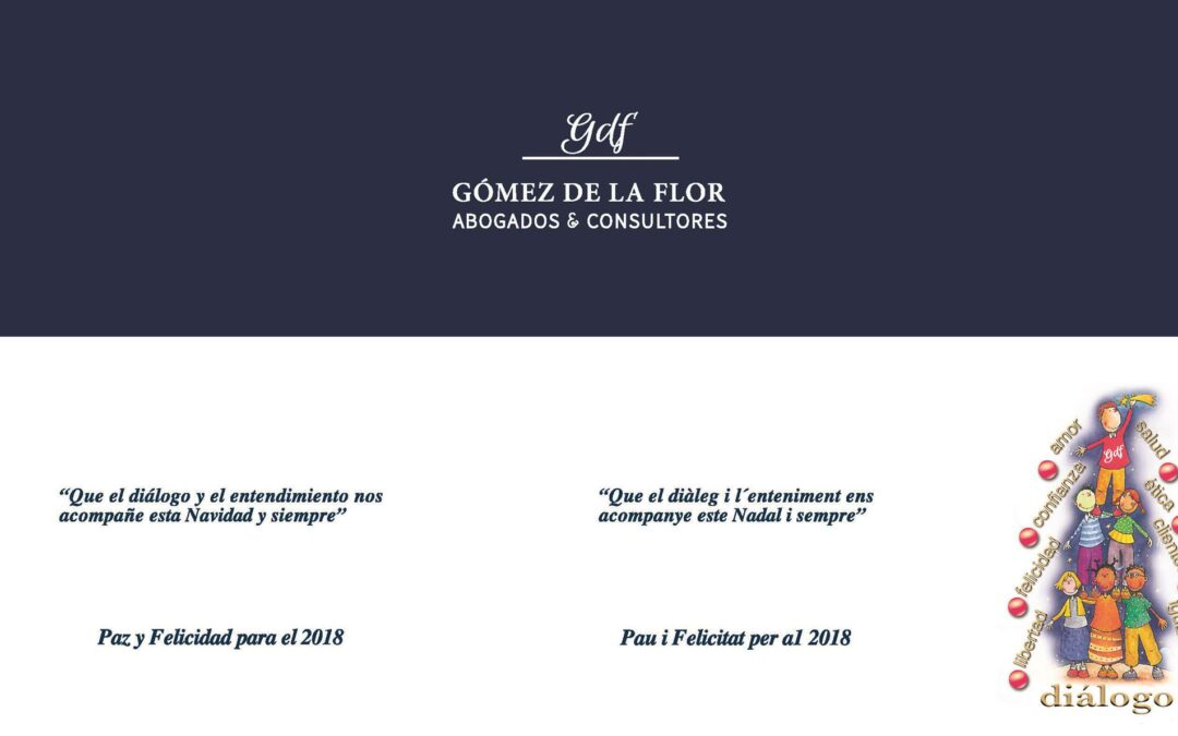 El equipo Gómez de la Flor Abogados y Consultores os desea unas felices fiestas Navideñas y Paz y Felicidad para el próximo año 2018.